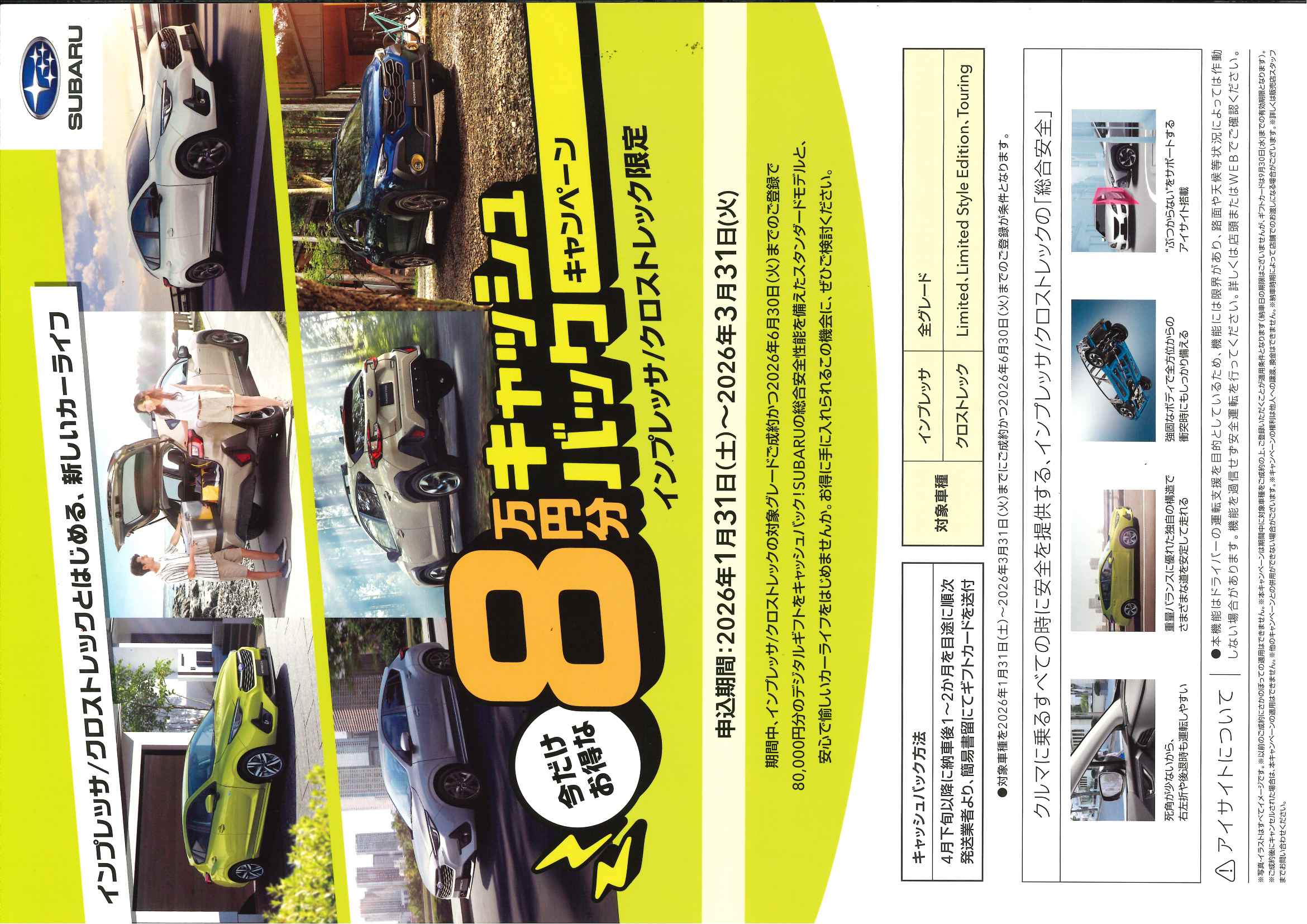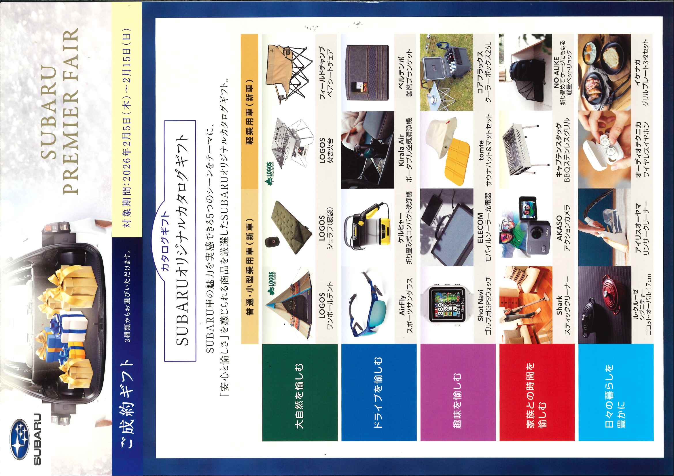 いつものフェア恒例エンジンオイル交換特価も!ご来店をお待ちしております。スバルプレミアムフェア(カタログギフト 又は デジタルギフトプレゼント)と8万円分キャッシュバックキャンペーン実施中です。